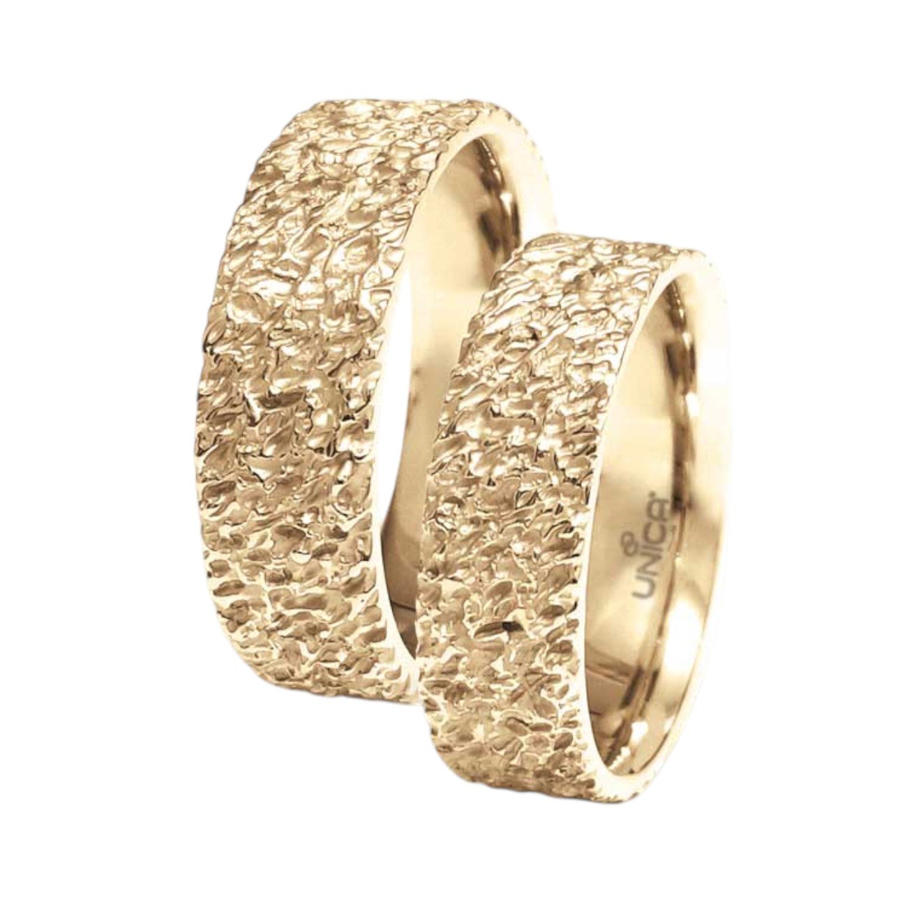 Anelli Fedi grezze scolpite, anelli di grande impatto e personalità. Intriganti i riflessi della luce sulla superficie esterna, quasi increspata, che sembra scolpita.