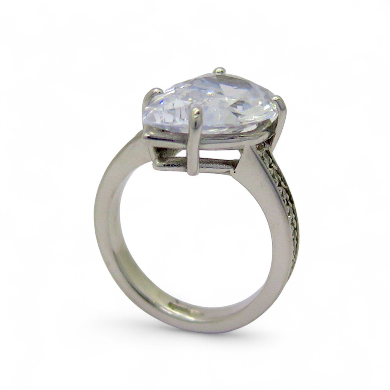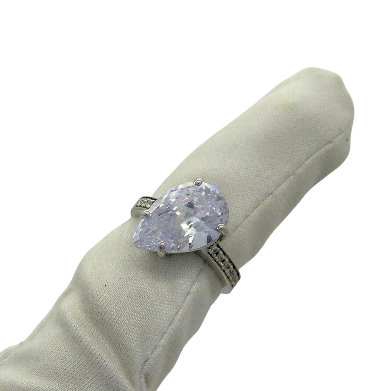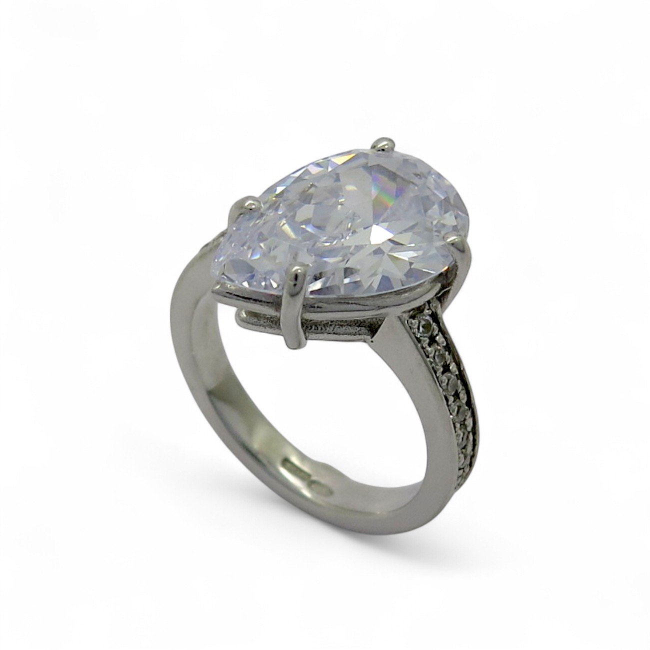 Anello in argento 925 goccia color diamante e gambo in zirconi