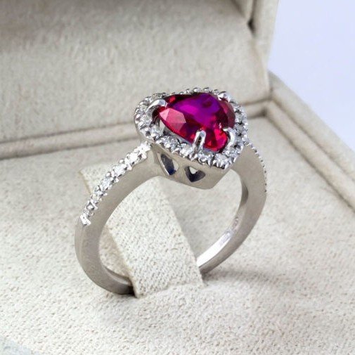 Anello centro cuore rosso argento 925