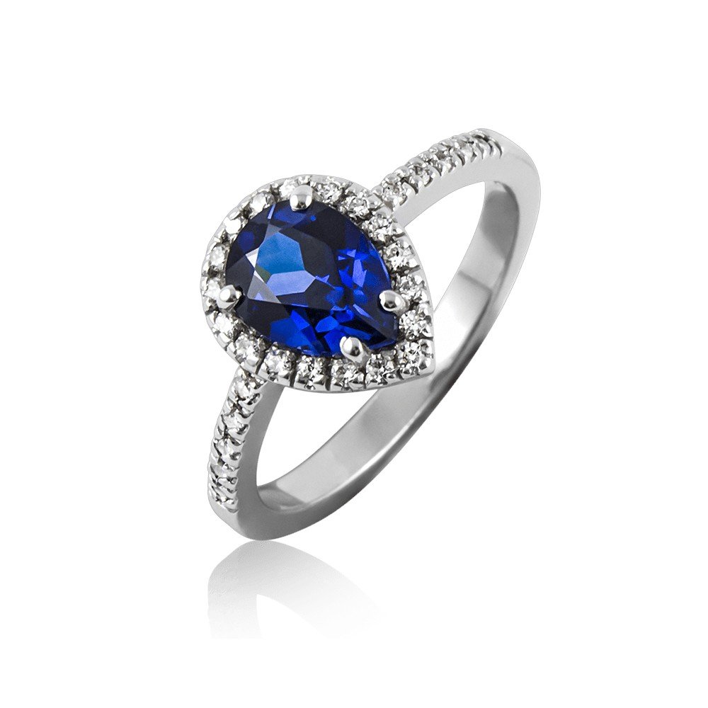 Anello goccia blu in argento 925 e zirconi