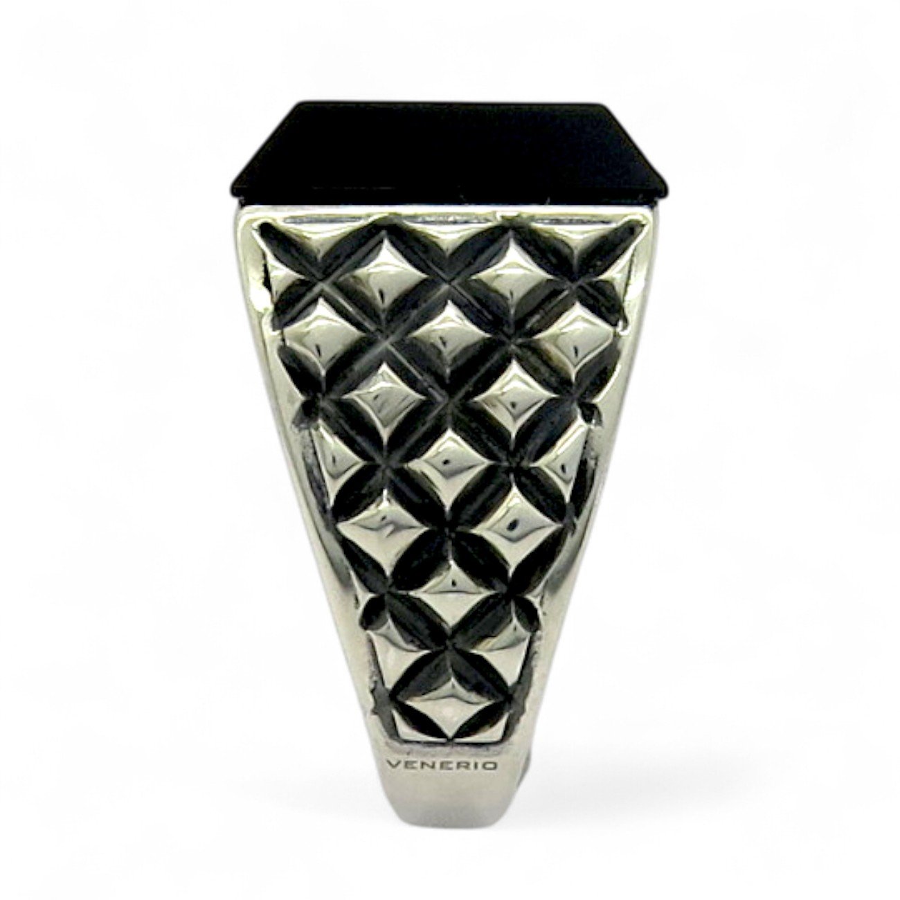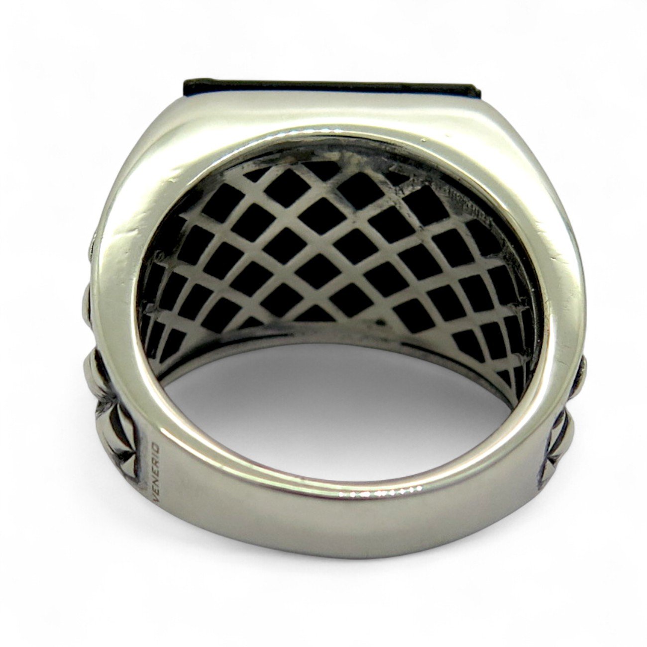 Questo anello combina materiali premium con una lavorazione accurata che rispecchia la tradizione della Marca Venerio. L’argento utilizzato garantisce resistenza e durata nel tempo, mantenendo la sua bellezza inalterata. L’ampia superficie dell’onice sporgente incastonata con precisione conferisce all’anello un’eleganza senza pari e lo rende ideale per gli uomini che desiderano accessoriare con classe senza rinunciare alla praticità.