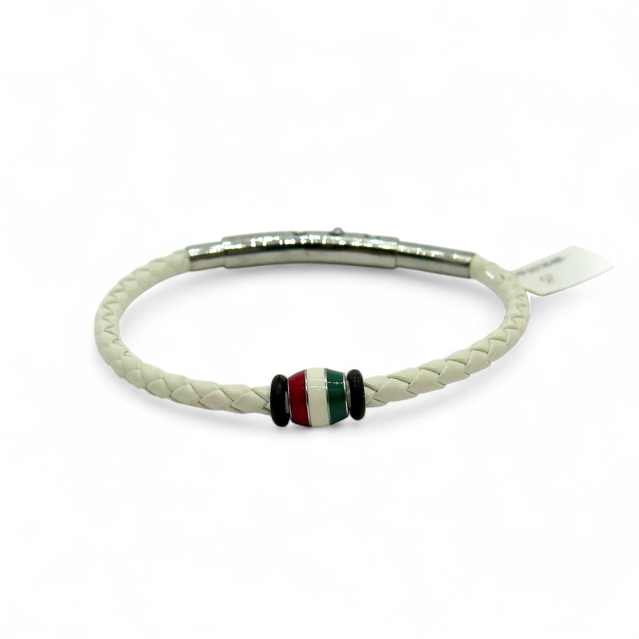 Bandiera italiana con smalto nei tre colori e cordone intrecciato in pelle bianca