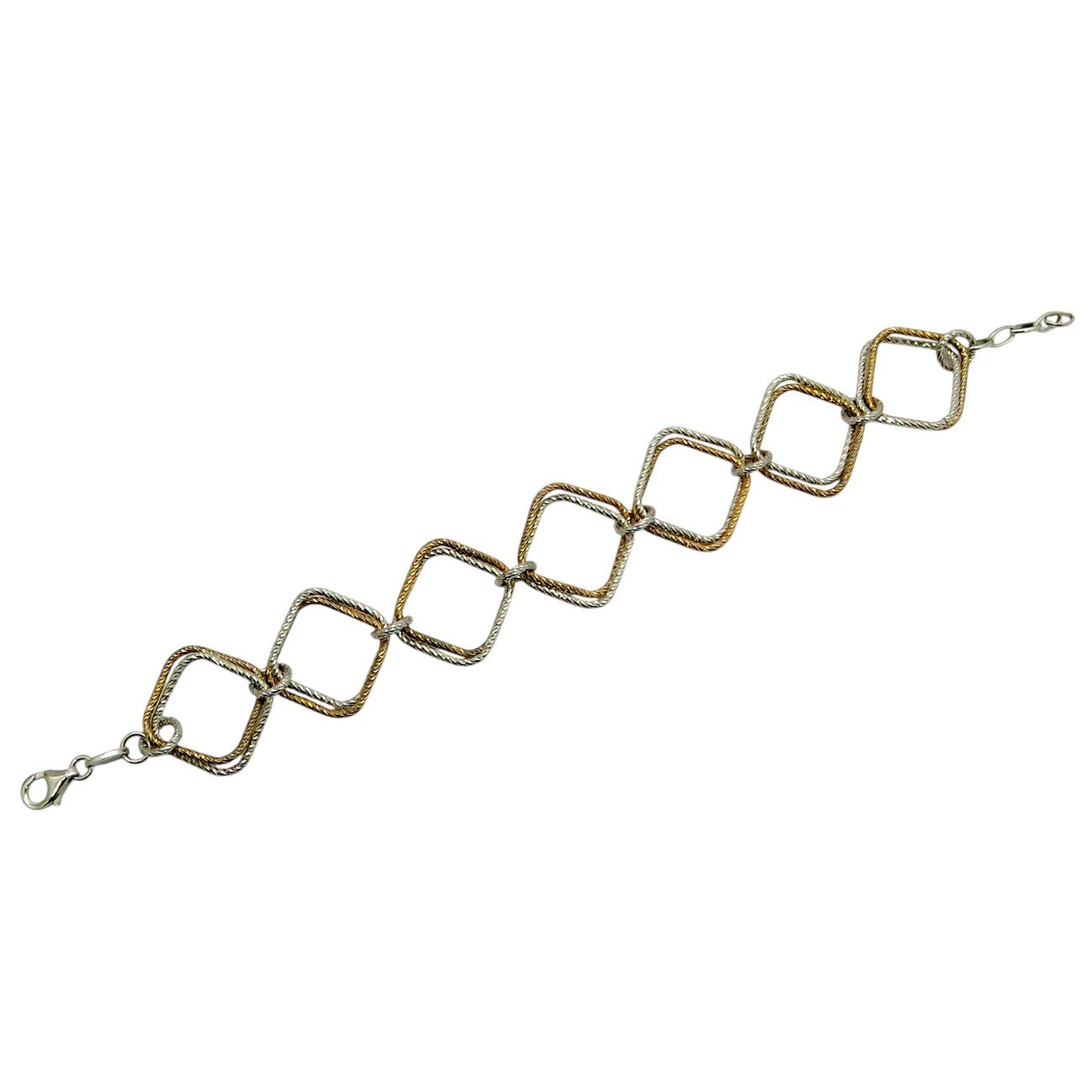 Il Bracciale originale donna Fraboso in argento 925 è un autentico capolavoro di artigianato italiano. Perfetto per valorizzare ogni look, si distingue per il suo design innovativo caratterizzato da quadrati diamantati parzialmente placcati in oro rosè, che conferiscono un’eleganza unica e ricercata. Le dimensioni dei quadrati, pari a 2 cm di lato, rendono il gioiello visivamente raffinato senza essere eccessivamente appariscente.