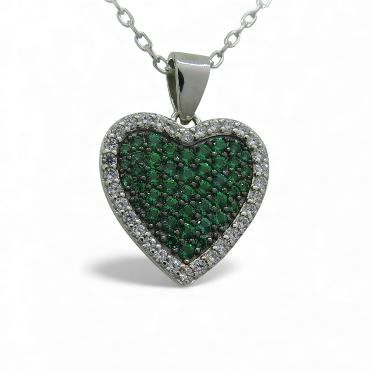 Collana con Ciondolo a Cuore Verde e Contorno in Argento 925