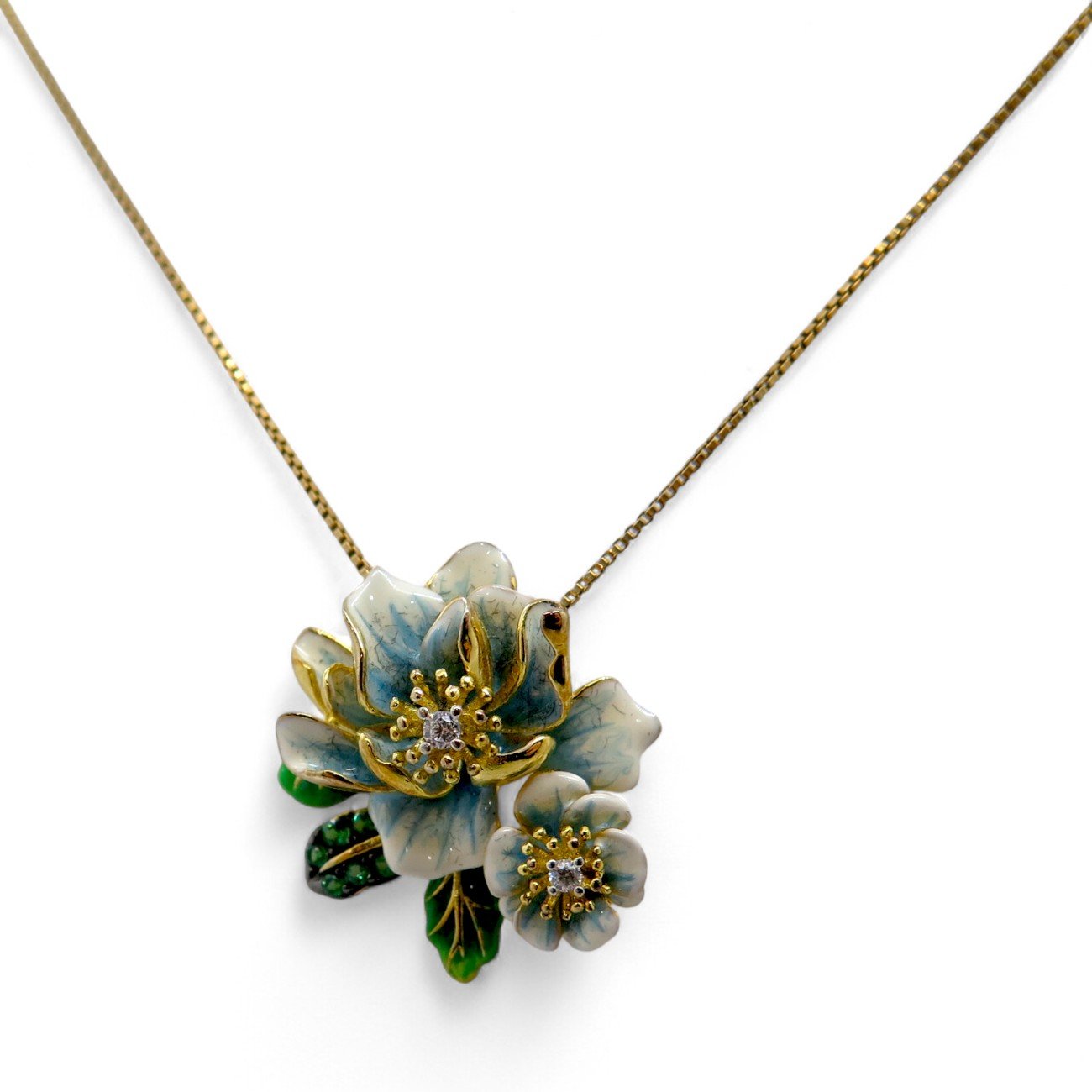 Collana ciondolo fiori smaltati in argento 925