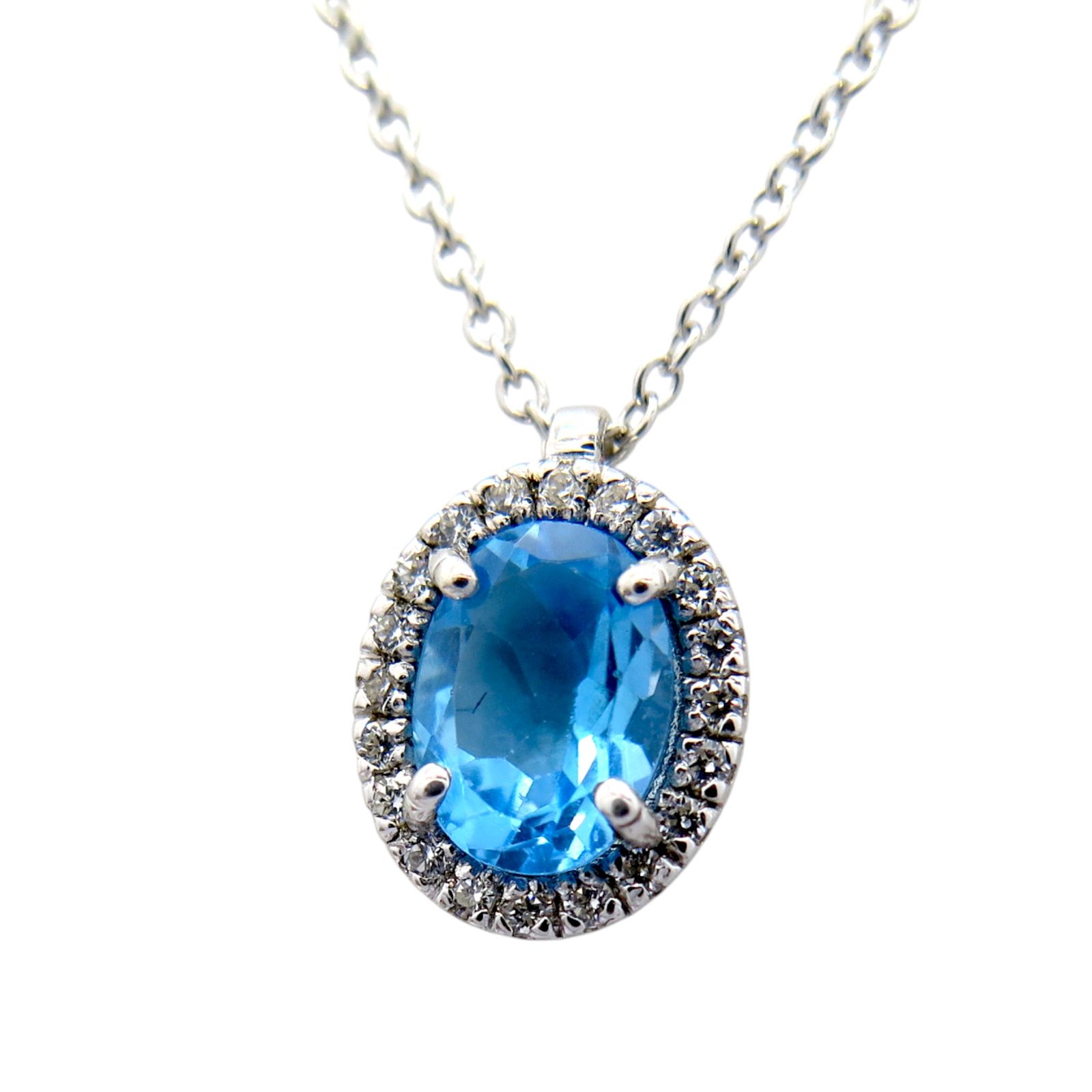 le pietre sono zirconi, il centro di un bel colore azzurro topazio ovale misura 8 mm x 6 mm