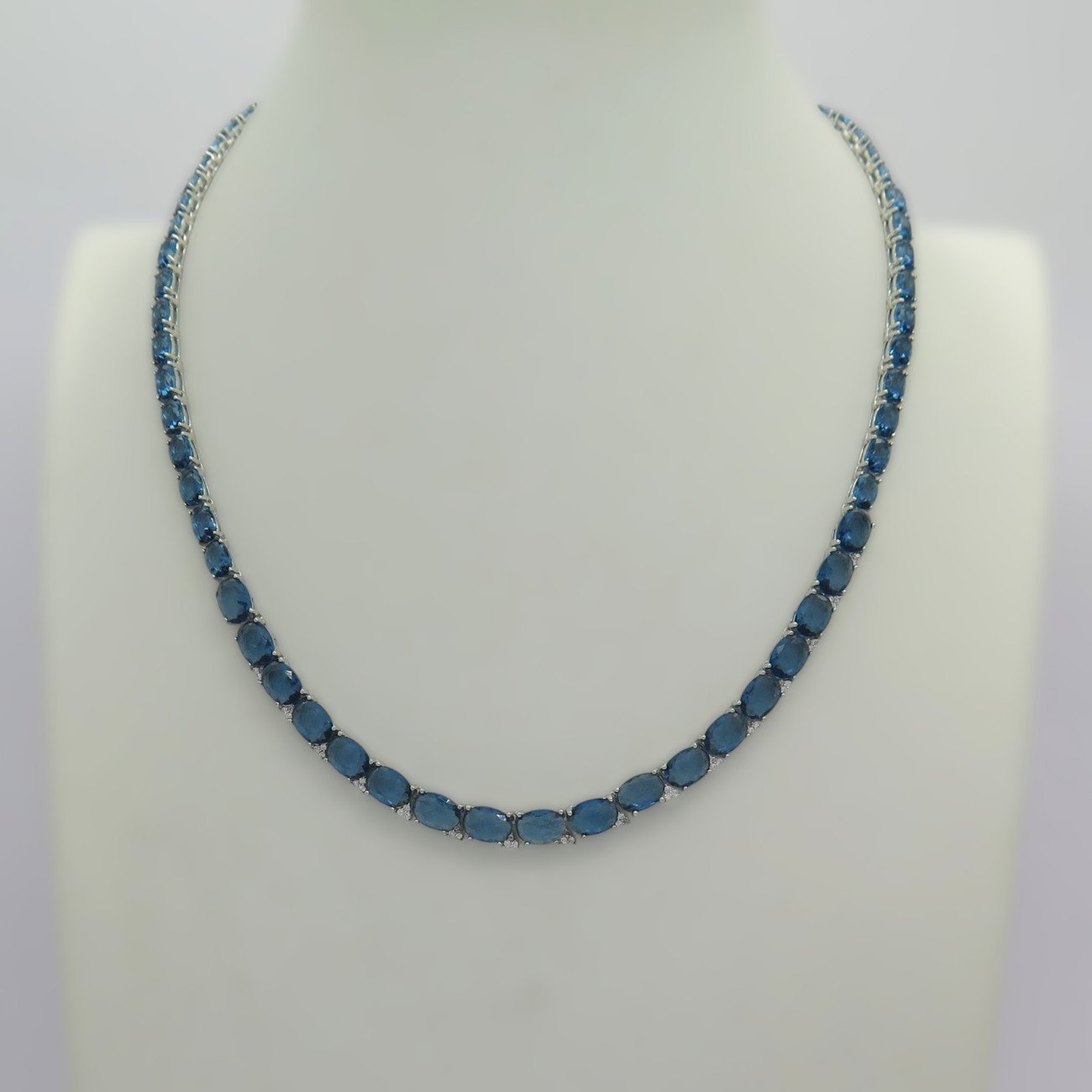 le pietre sono ovali topazi london e bianchi incolore nella parte della chiusura, sono presenti dei piccoli zirconi bianchi incolore nella parte centrale della collana che alternano gli ovali più grossi che misurano 5 mm x 7 mm