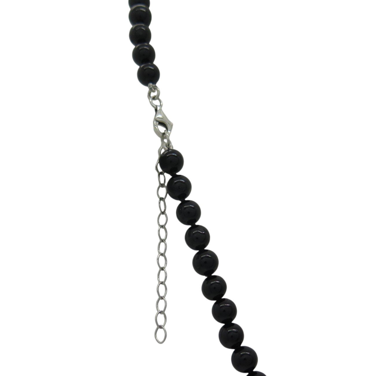 Questa collana si distingue per l’utilizzo di materiali pregiati. Le sfere nere lucide, con un diametro di 6 mm, sono realizzate in raffinata onice, garantendo durata e uno stile sofisticato. La chiusura in argento 925 non solo è robusta, ma aggiunge un dettaglio luminoso, esaltando l’aspetto complessivo del gioiello. La lunghezza è regolabile, da 50 cm a 55 cm, grazie agli appositi anellini che garantiscono un’ottima vestibilità per diverse preferenze.