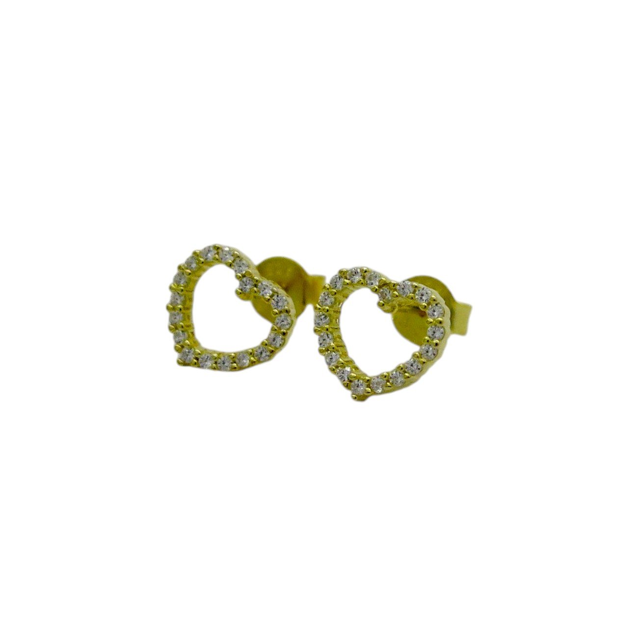 Orecchini cuore in argento 925 placcato oro giallo e zirconi