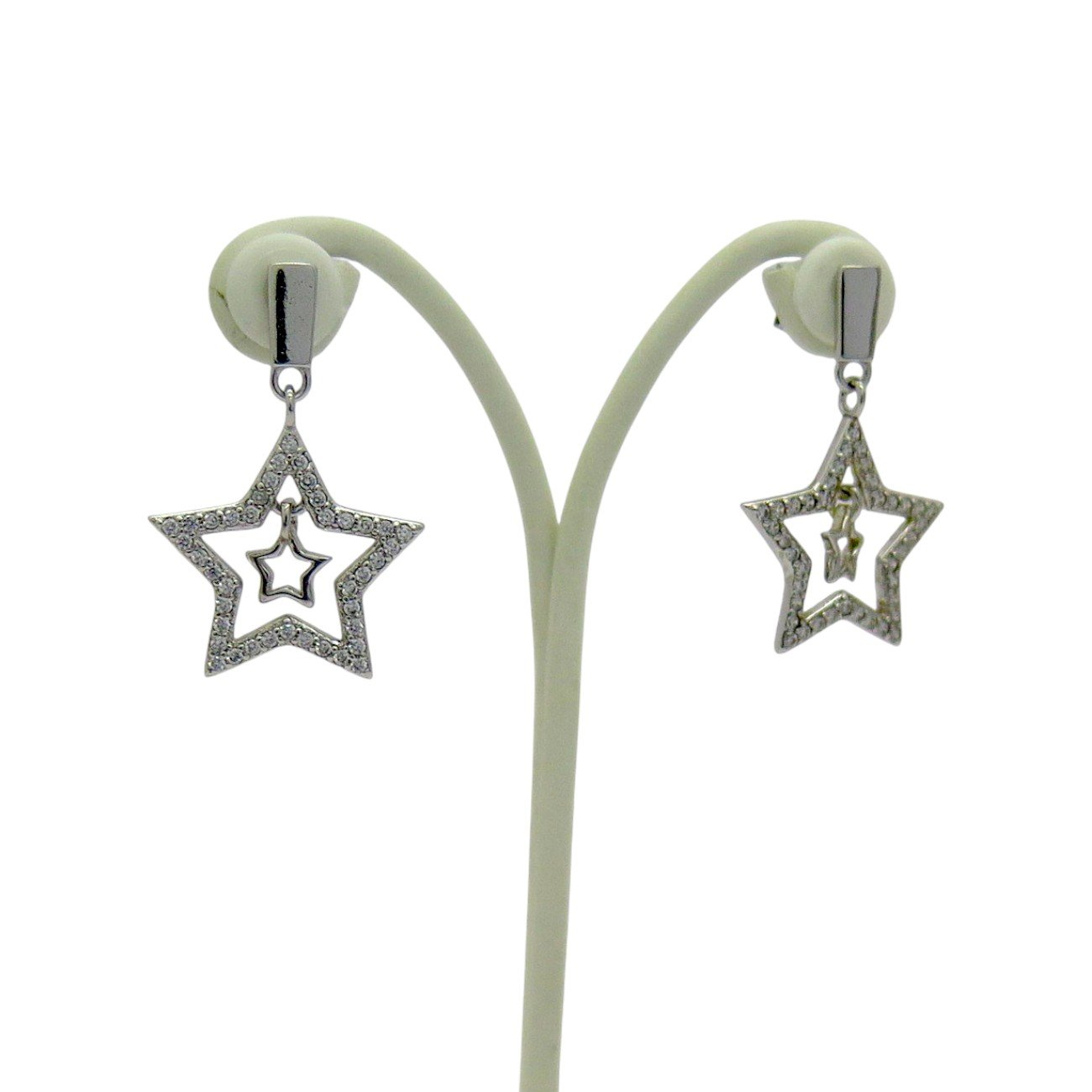 Perfetti per aggiungere un tocco di eleganza e originalità al tuo look, gli orecchini pendenti stelle in argento 925 sono un accessorio irrinunciabile. Questo modello è ideale per adattarsi sia alle donne che alle bambine, grazie al suo design delicato ma sofisticato. Il punto focale di questi orecchini è la stellina all’interno di una stella più grande, impreziosita da luminosi zirconi, che aggiungono un dettaglio raffinato e brillante.