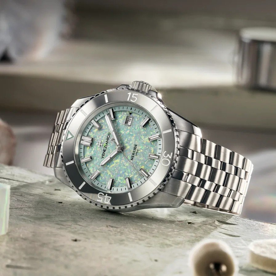 Il modello è accompagnato da un packaging dedicato, caratterizzato da una finitura argento progettata per richiamare il gioco di riflessi del quadrante. La superficie cattura e diffonde la luce in modo controllato, evocando lo spettro cromatico che definisce l’identità dell’orologio. È un dettaglio pensato per introdurre fin da subito il concept alla base del modello: la luce come elemento centrale del design.