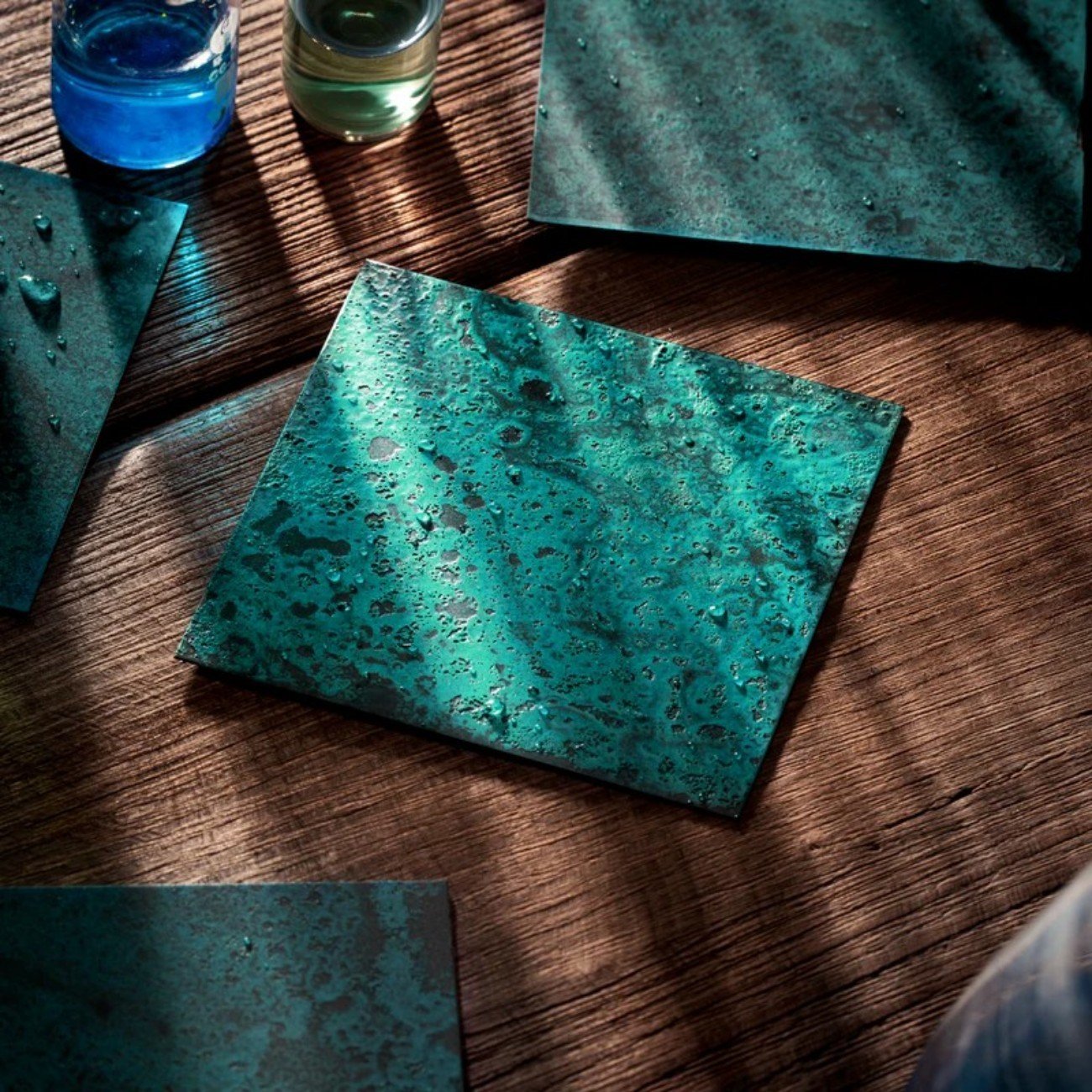 QUADRANTE: Ottone con patina verdigris ottenuta tramite processo artigianale di ossidazione controllata e fiammatura