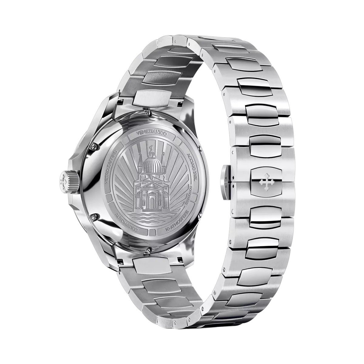 Questo orologio si ispira alla sublime Basilica del Redentore, una delle più celebri realizzazioni dell’architetto Andrea Palladio, che ha segnato la storia dell’architettura veneziana con il suo stile Neoclassico. Le linee e le proporzioni della cassa esprimono un’armonia di forme che si traduce in un design sia elegante che contemporaneo, offrendo una versatilità senza precedenti.